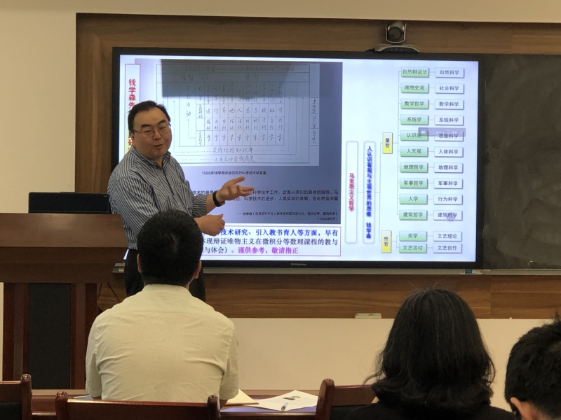 报告会上,谢教授从教与学的目标与现实矛盾出发,探讨课程的一流化、教与学的矛盾、思想与方法等问题。并以微积分的课程知识体系为切入点,将辩证唯物主义课程思政元素、三观引领三全育人等理念融入微积分的教学过程中,他提出“内容方法化、做法思想化、学习通识化”的教学研究与实践经验,为老师们的授课教学提供了宝贵的经验。报告结束之后,谢教授与老师们进行深刻交流,为学院的课程建设提供了意见和建议。
