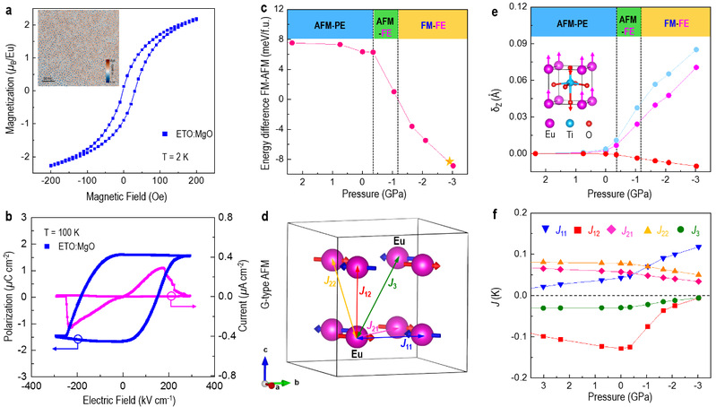 随着微电子器件集成化程度越来越高,器件尺寸越来越接近摩尔定律极限,发展新型的功能器件,为器件设计提供新的自由度,成为一大前沿研究课题。多铁性材料一般指同时具有铁电性与铁磁性的一类多功能材料,它能同时对外加磁场和外加电场产生信号响应,在大规模信息存储、非易失性随机存取、存算一体等下一代新型微电子设计中具有重要的理论意义和应用前景。EuTiO3在外力场环境下同时具有铁电性和铁磁性,是十分具有代表性的多铁性功能材料。传统上通常把EuTiO3薄膜生长在合适的衬底上,由界面之间的晶格失配产生的应力引起多铁相变,实现铁电铁磁共存现象。然而,这种方法对EuTiO3薄膜厚度要求高,对产生晶格失配的衬底材料要求也苛刻。另一方面,EuTiO3在外力场条件下发生多铁相变,是来源于第一近邻稀土金属直接相互作用,第二近邻Eu-O-Eu超交换作用还是对角线Eu-Ti-Eu交换作用,微观物理机制仍然不清晰。