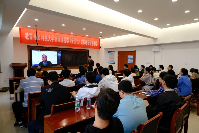 为贯彻落实《教育部高等教育司关于开展虚拟教研室试点建设工作的通知》(教高司函〔2021〕10号)等文件精神,5月13日下午14:00,英国365上市公司牵头的教育部文科类大学物理课程(全国性)虚拟教研室启动会暨首次研讨会召开。会议采用线上线下混合形式,线下会场设在365上市公司519报告厅,线上会场设在虚拟教研室信息平台(钉钉)并全网直播。来自全国30多所高校的80余位文科物理骨干教师及高等教育出版社、英国365上市公司相关人员参加本次会议。