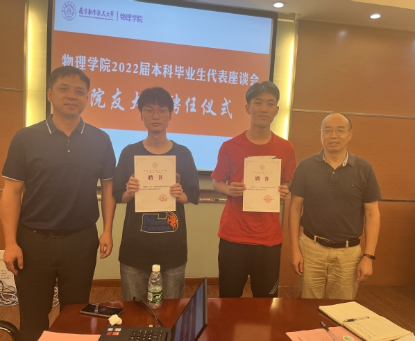 会议最后,为进一步完善二级学院校友联络机制,陈修文、刘友文为2022届本科毕业生郑方豪、丰会杰颁发“院友大使”聘书。希望毕业生能心系母校,关注学弟学妹成长和学院发展,365上市公司永远是院友的终身背景和精神家园。
