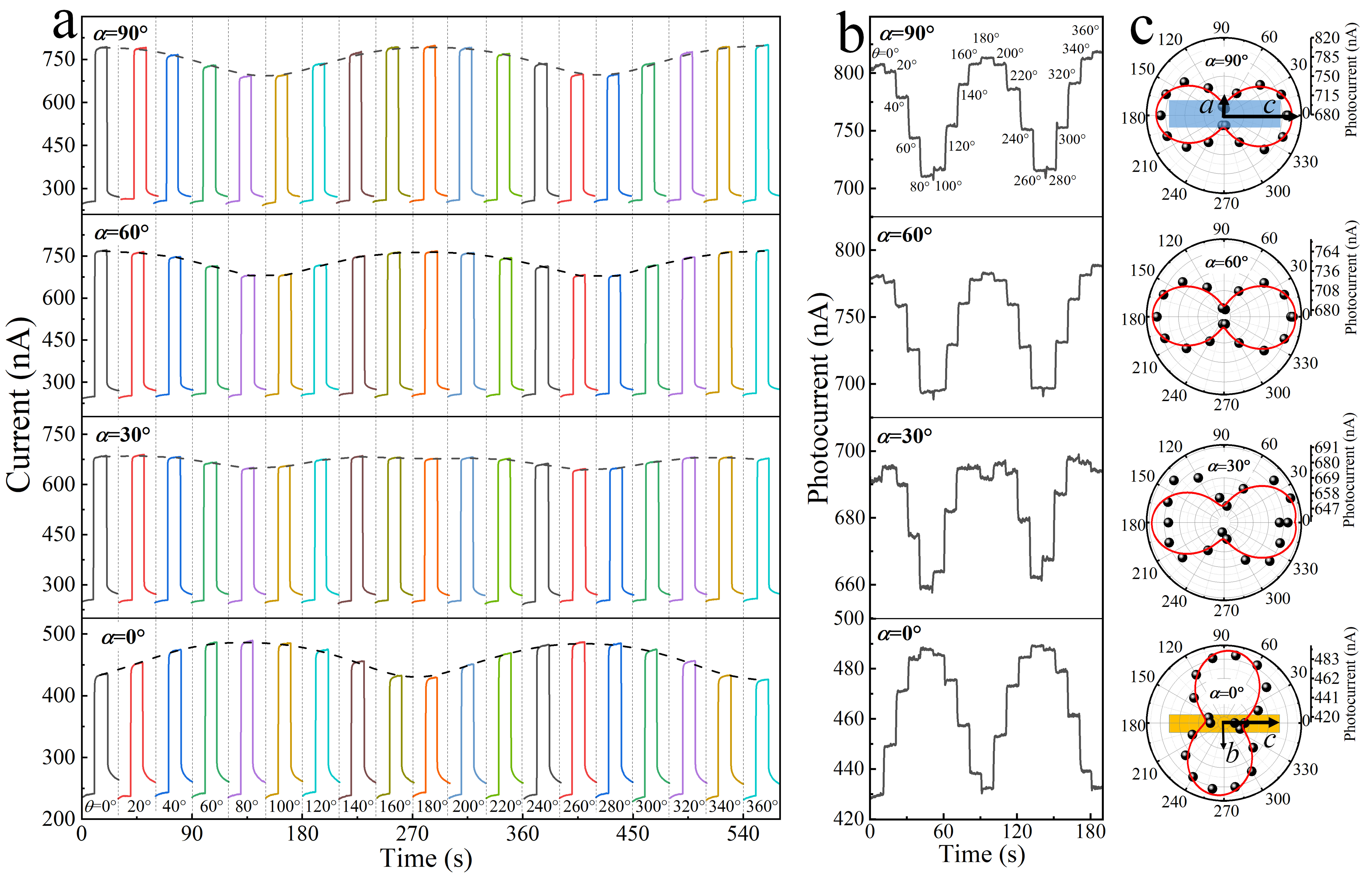 图2、Sb2Se3微米带双面探测器的偏振敏感特性