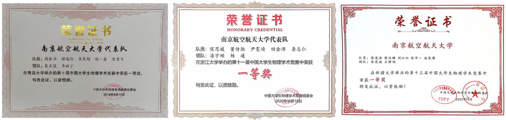 中国大学生物理学术竞赛一等奖获奖证书