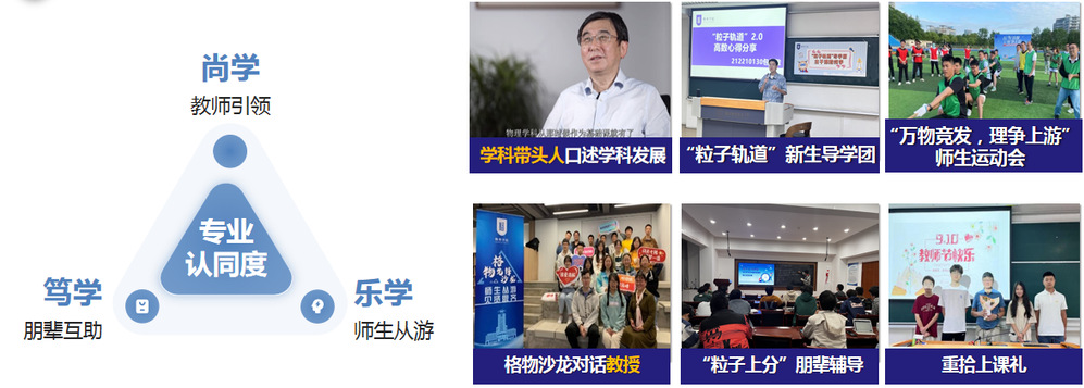 教育教学水平自评自建。学院秉持“学为中心、追求卓越、持续改进”的教学质量保障理念,着力推进“思政引领、三航特色”的课程体系建设。一方面,学院以课程负责人为核心,全面加强大学物理及实验课程的建设和教学团队的建设。依托“文科类大学物理虚拟教研室”“明理论教”等教学交流平台,以教学比赛为引擎,磨砺教师的教学能力,积极组织教学研讨,推进各级各类教改项目的研究,提升课堂教学质量,为培养新工科、新文科人才提供有力支持。另一方面,学院以专业负责人为核心,依托“国家级一流本科专业建设点”“江苏省基础学科拔尖人才培养基地”,结合“1+4启明导师”、科普育人、主题创新区建设等举措,系统推进应用物理学专业“三融三力”的拔尖创新人才培养体系建设。学院先后出台《本科生启明导师制实施办法》《公共基础课程负责人聘任及管理办法(试行)》《本科专业负责人聘任及管理办法(试行)》《创新实践项目管理办法(试行)》《本科生班级导师管理办法》《本科教学经费管理办法(试行)》《专业建设指导委员会工作职责》《教学团队建设与管理办法(试行)》等系列管理制度,持续完善构建本科教育教学管理体系。