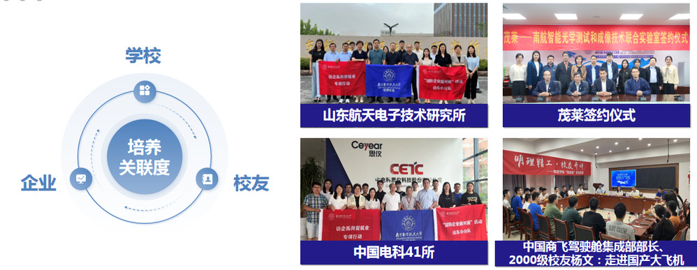 学院通过走访北京、天津、西安、哈尔滨、洛阳等地的国防单位,以及南京本地的相关单位,了解企业需求、倾听校友建议、开设企业课程,促进物理基础学科与国防企业联系常态化、合作深入化。邀请企业HR在就业季前夕走进学院,通过职业素质训练营、“新视界”沙龙等方式为学生开讲,促进低年级学生了解专业知识在实践领域中的应用,从而激发学习动力,帮助高年级学生提升求职面试经验技巧、提升人职匹配精准度。