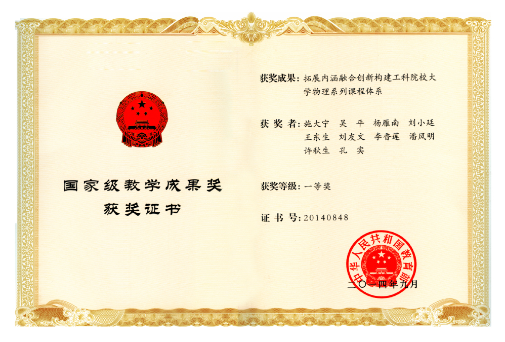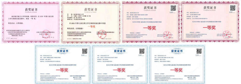 全国大学生物理实验竞赛一等奖获奖证书