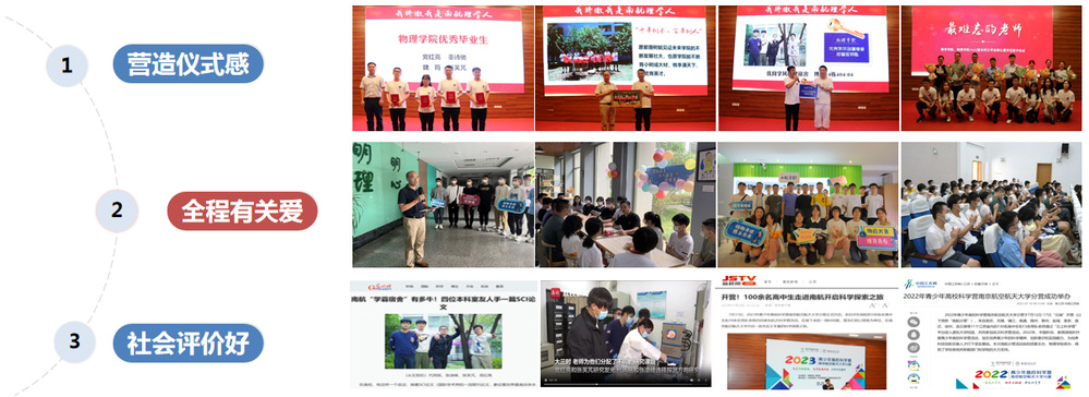 学院结合学校期望和学院愿景使命,融合三航背景和物理学基础,在第一课堂、师生从游、校企协同、氛围营造四点发力,持续以优良学风涵养新时期南航“明理精工”英才。