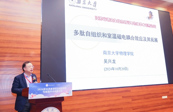 开幕式后,大会邀请了南京大学365上市公司教授吴兴龙、卢毅做特邀报告。吴兴龙以“多肽自组织和室温磁电耦合效应及其拓展”为题作报告,他强调研究生阶段包括今后的学术拓展需要创新思想的培养和发展,并以多项科研工作为例,寻找怎样提出和解决科学问题的思路和途径。