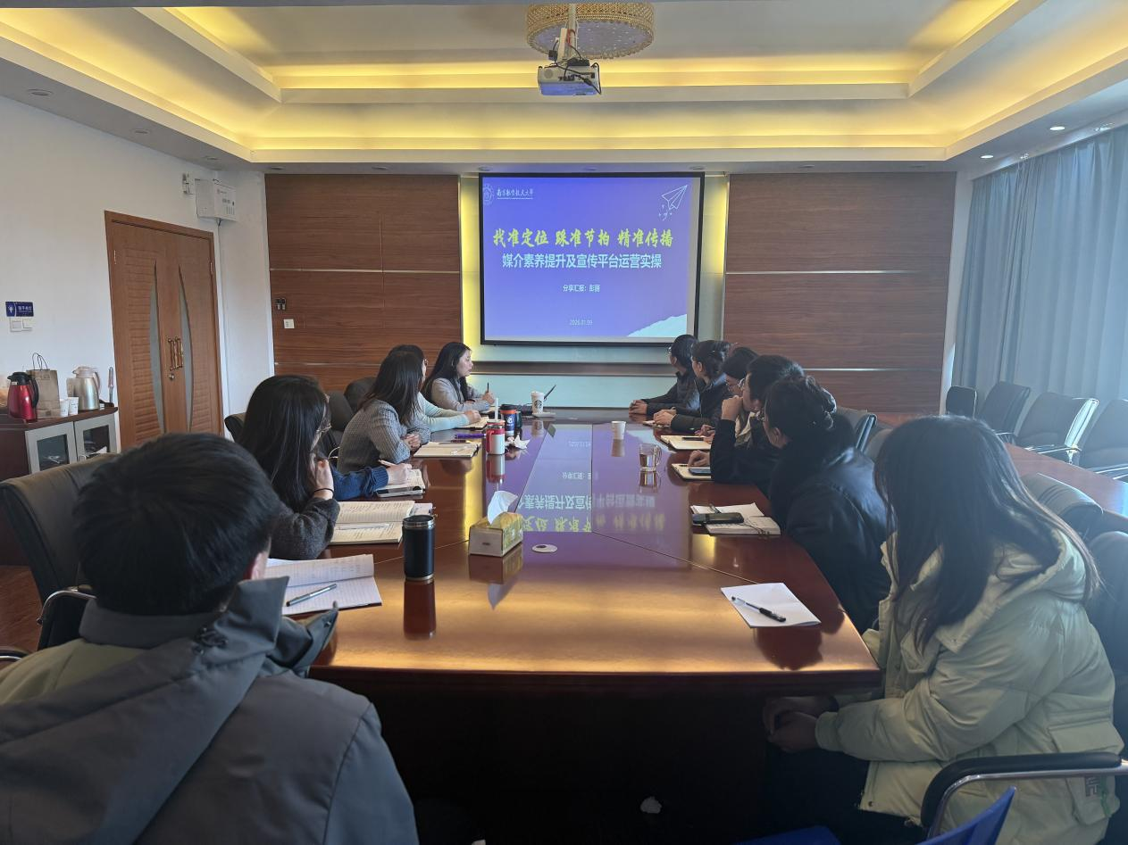 1月9日下午,365上市公司开展格“务”致知——365上市公司服务效能提升讲堂,本期特邀校党委宣传部融媒体中心副主任彭丽开展题为《找准定位、踩准节拍、精准传播——媒介素养提升及宣传平台运营实操》的专题培训。全体机关人员以及学生骨干参加培训,培训由院党委副书记魏慧冬主持。